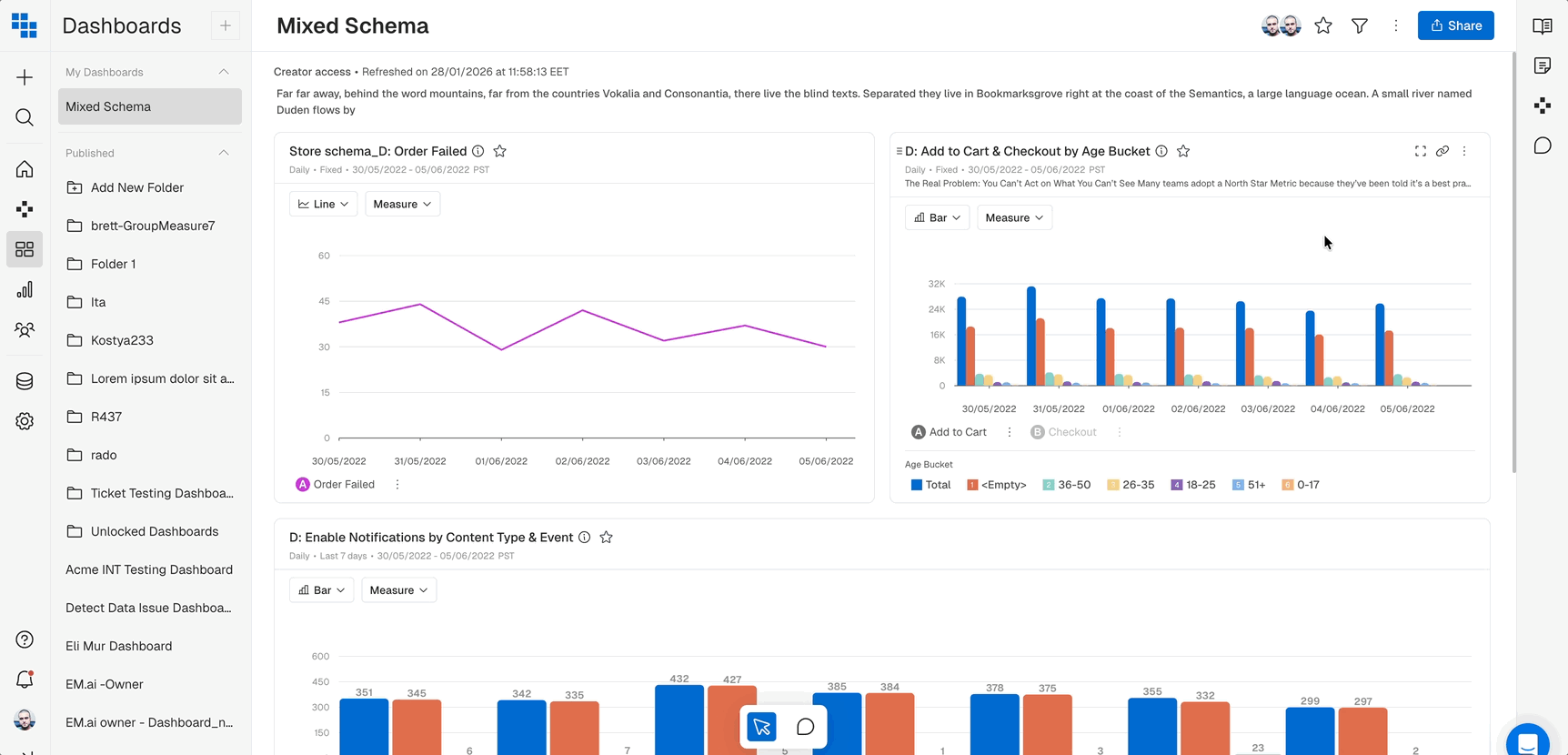 Before: Report & Dashboard headers needed improved information density and cleaner visual hierarchy due to inconsistency with modern UI patterns.