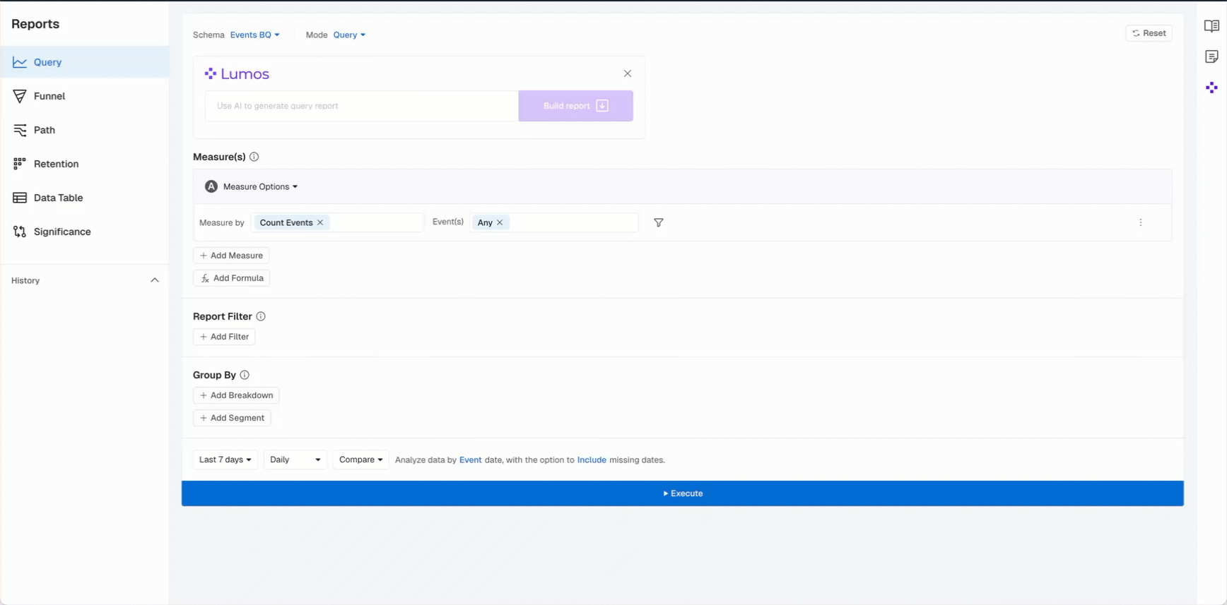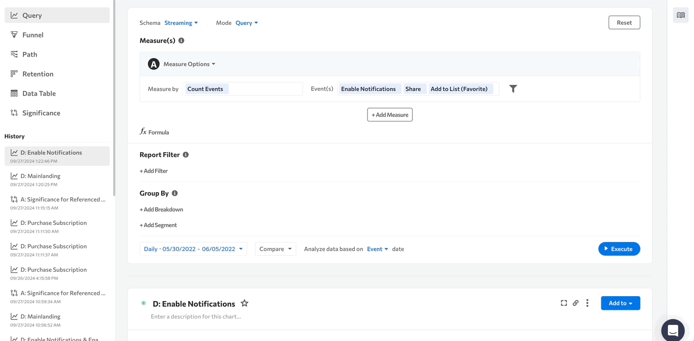 Breakdown by a Field: Select the field you want to break down by to see results grouped based on the values of that field. These can be things like "User Type" or "Subscription Mode".
