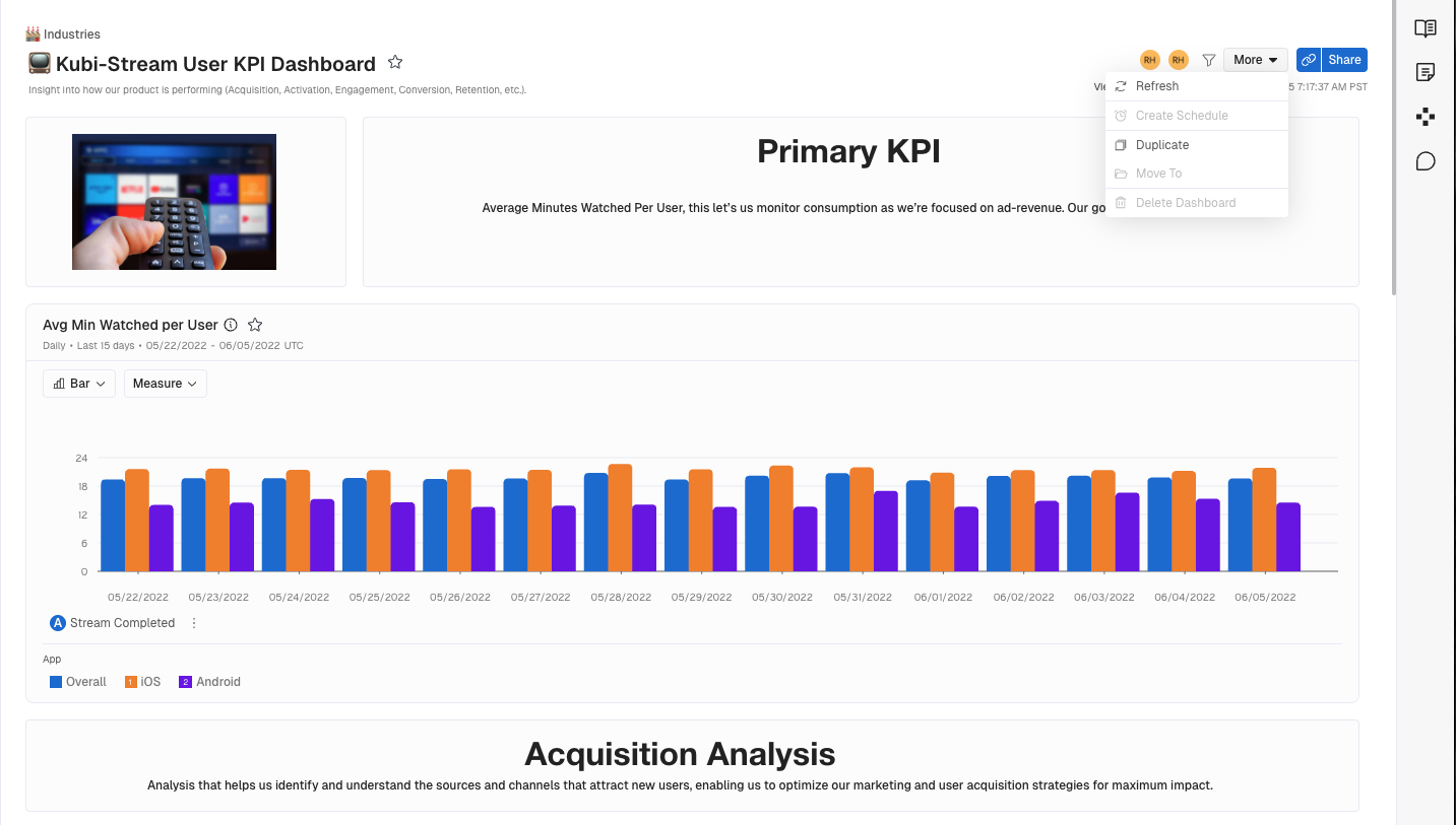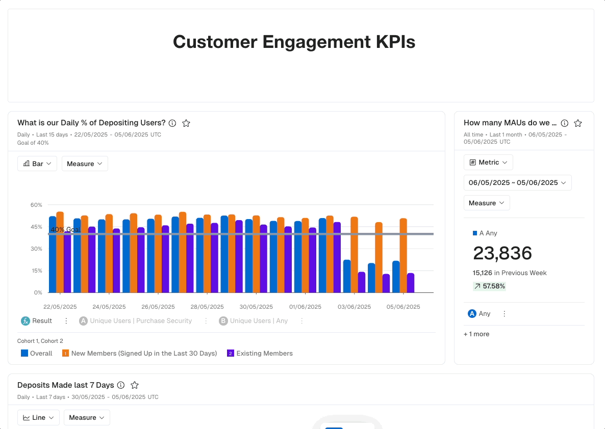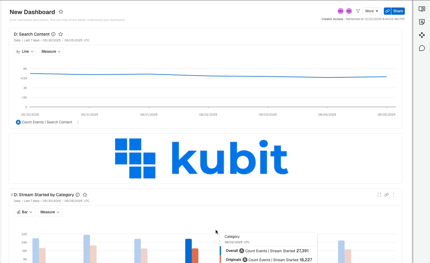 Clicking Refresh will bring all analyses on the Dashboard up to the Live date of your Kubit data.
