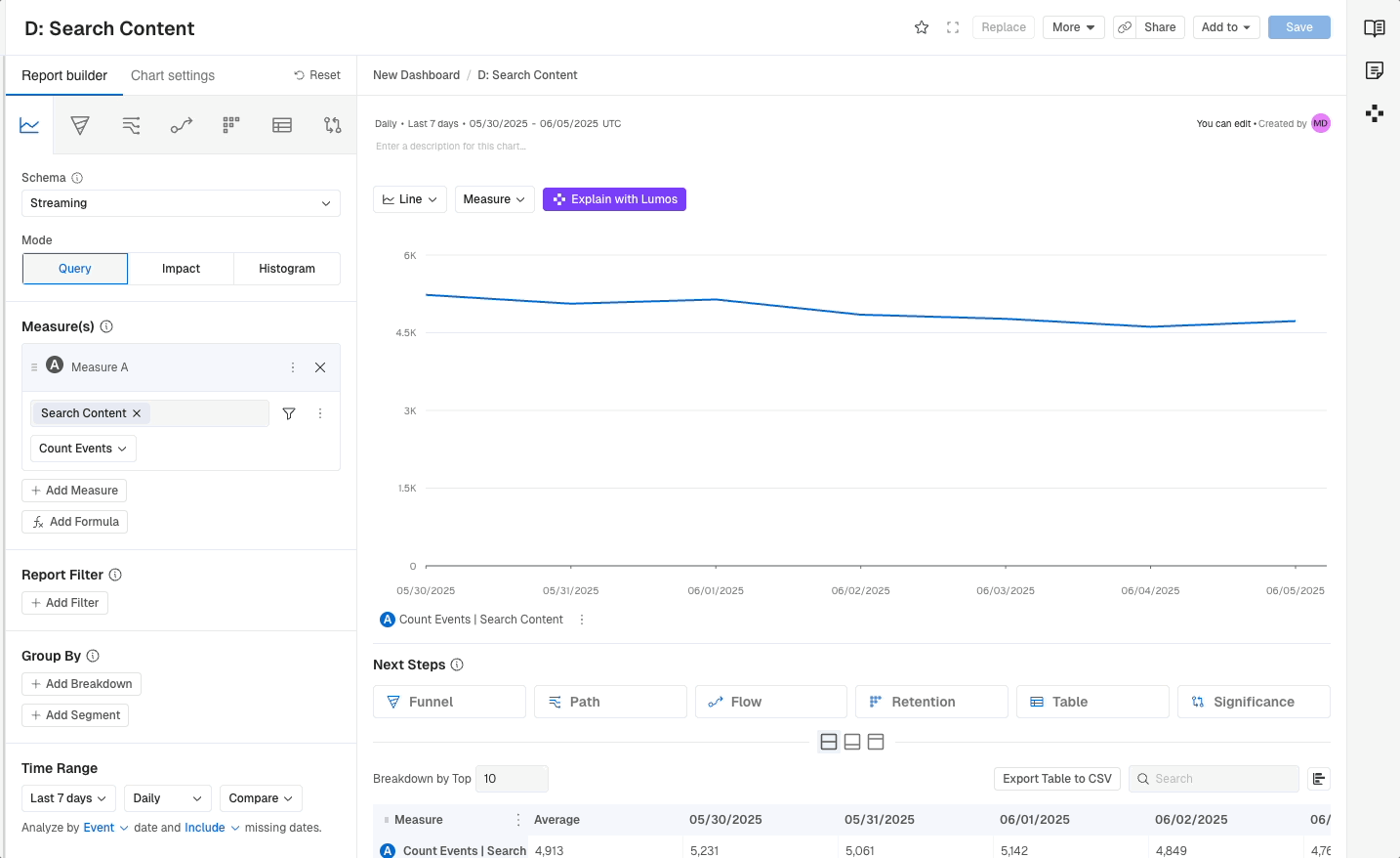 If you need to change the underlying logic of a report or make more substantial changes you're able to click into the Report header (name) and we will take you directly into the builder. If you have Edit Permissions on the dashboard you will be able to make whatever changes you need. This includes:
