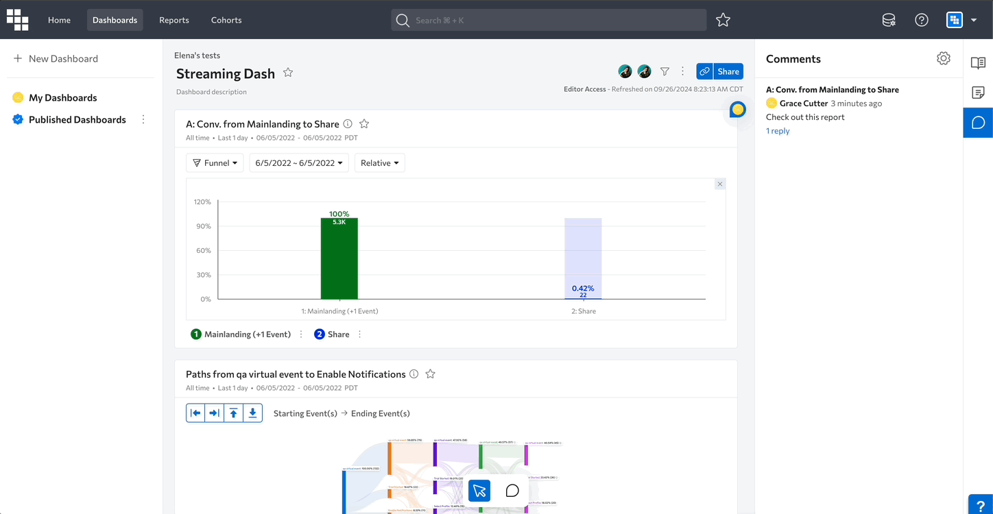 When using Dashboards users now have the option to comment on individual Reports or the Dashboard as a whole.