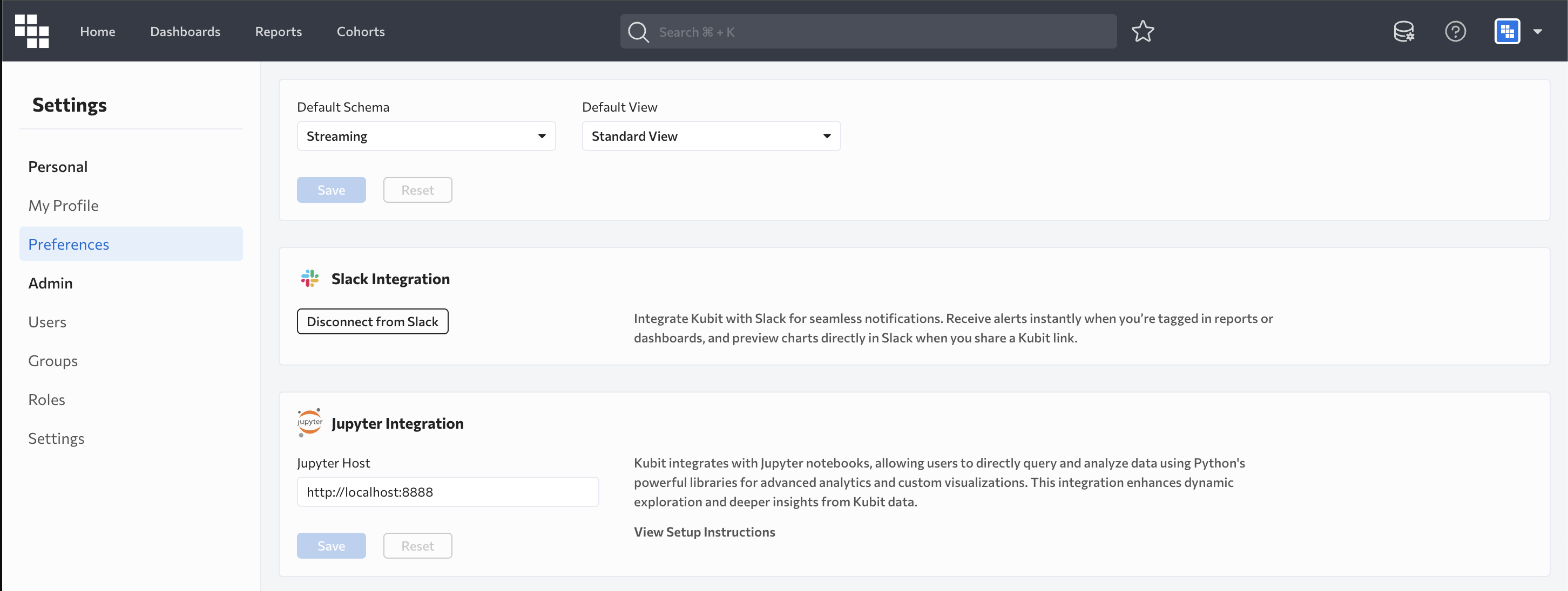 Users are able to mention any other Kubit user, but the mentioned user will only receive notifications if their Slack integration is set up. If the sending user's Slack integration isn't set up, the receiving user will still get a notification, but it will not say who it is from in the Slack message. To set up the integration, read our Integrate Kubit with Slack guide. Once the integration is set up, two new options open up.