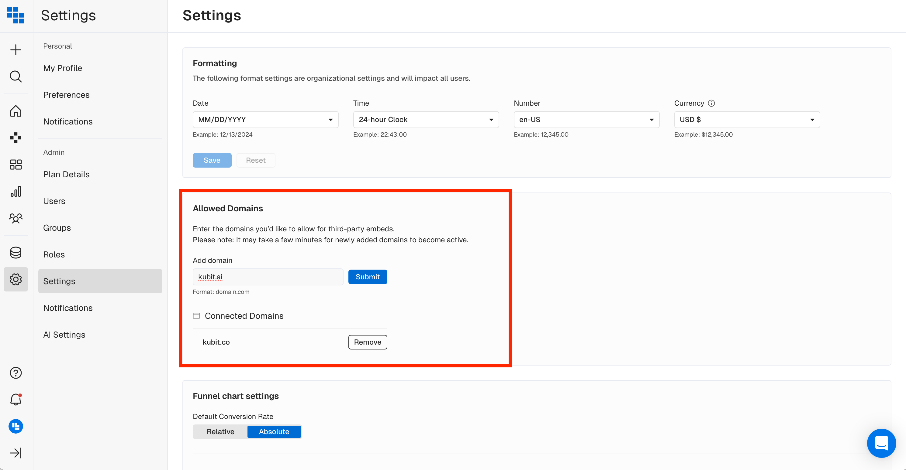 - Add the domain of the website where you want to embed content. This only needs to be done once.