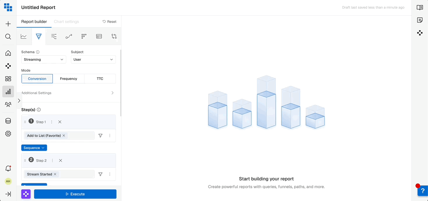 When building a funnel you may need to re-order steps when using a "Sequence" or "Exact" Order. In Kubit you're able to drag and drop steps and re-order them as needed.