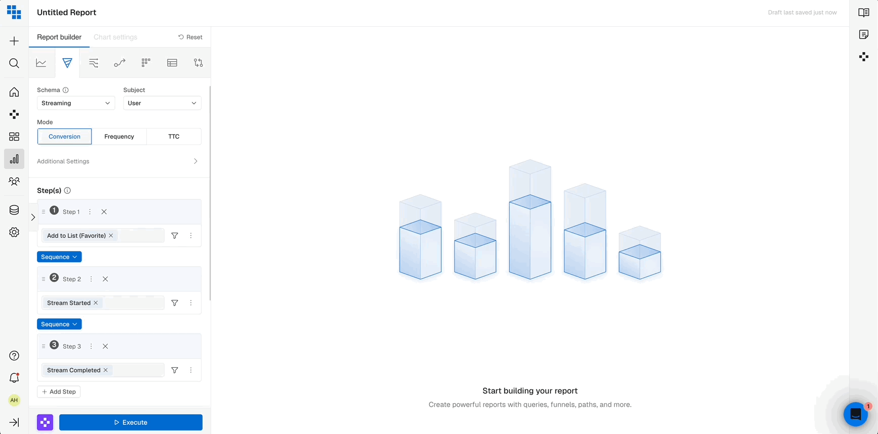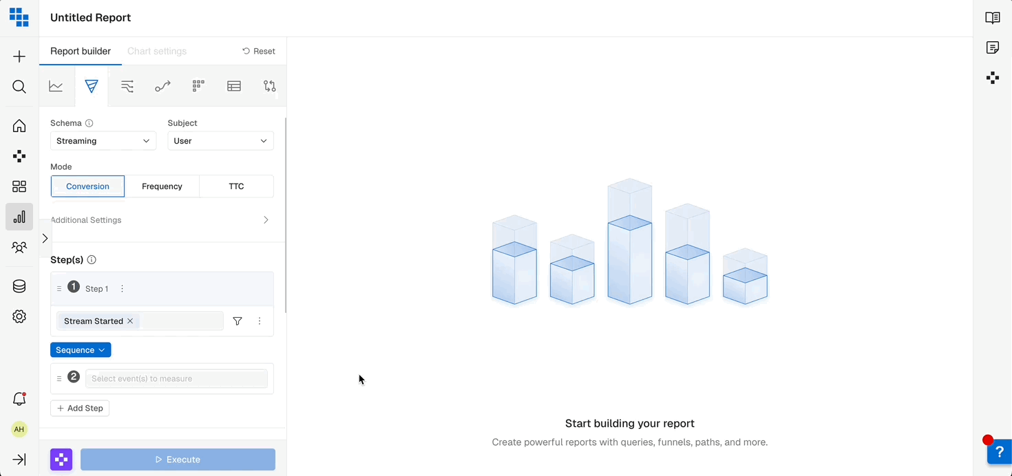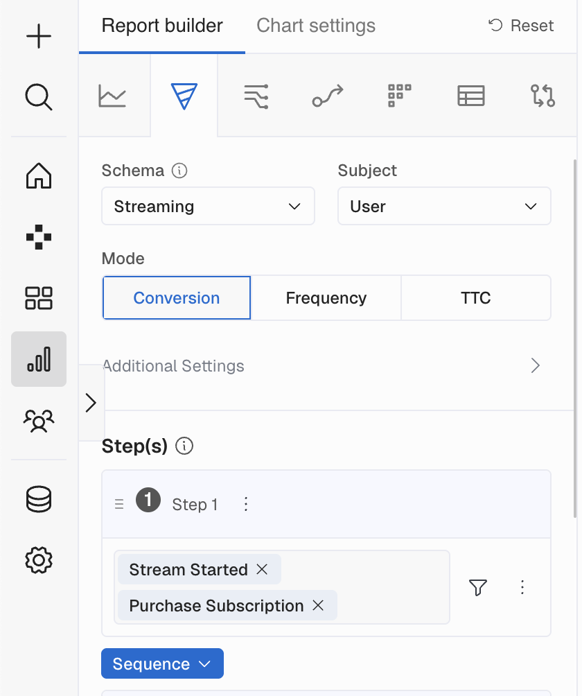 - You can give a name to each step to make it easier to differentiate in the chart. If no name is provided, default step names such as the event name will be used.