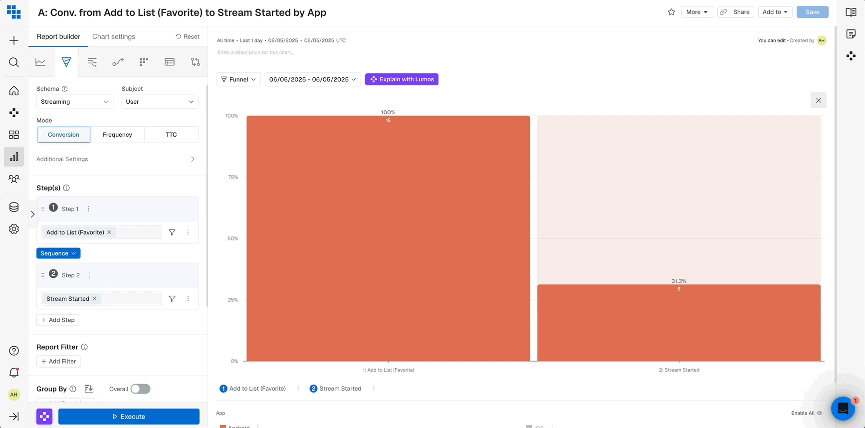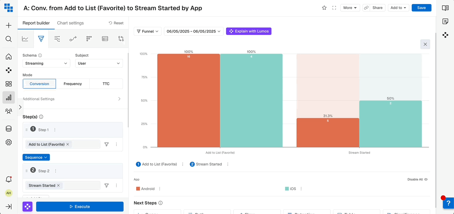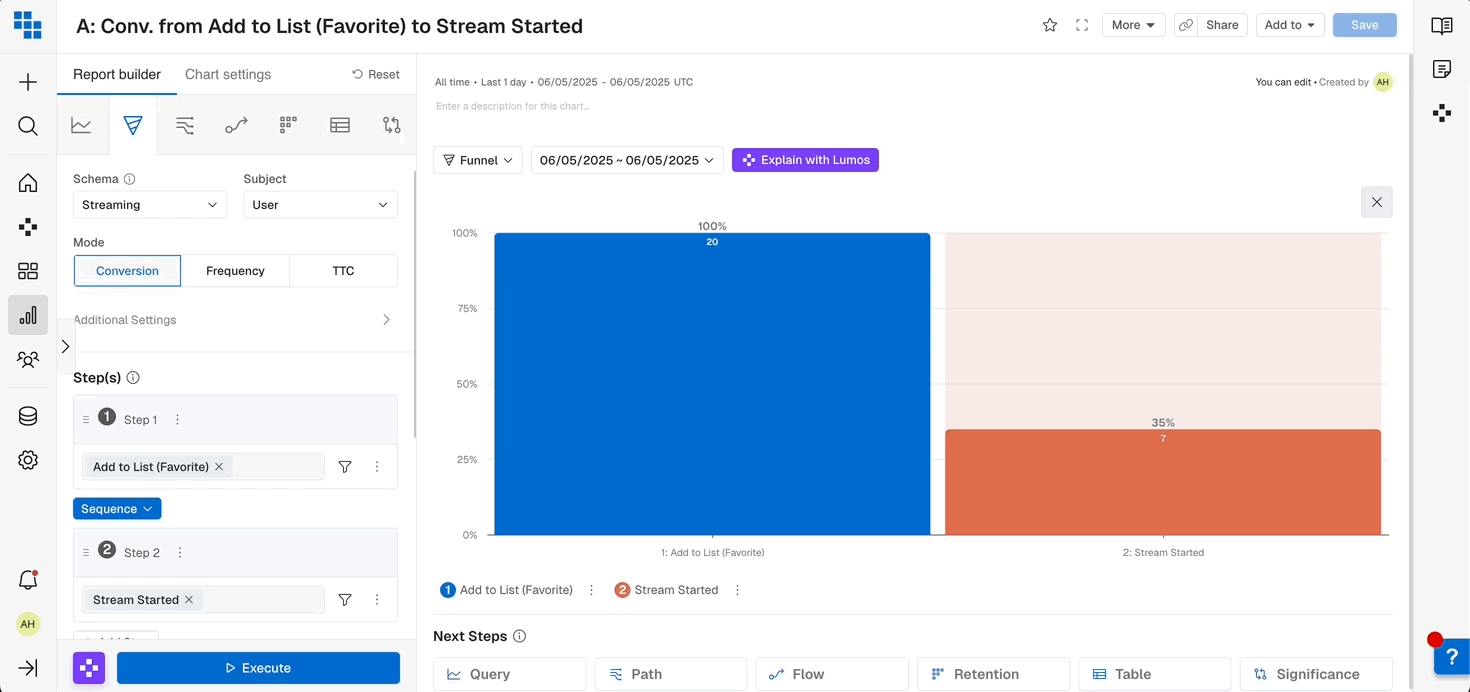 Funnels are great tools for understanding conversion and drop-off rates for critical steps within your product.