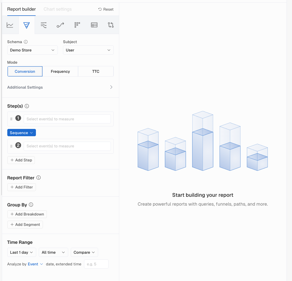 Best when you want to understand the time it took to convert from Step 1-N and through the entire funnel.