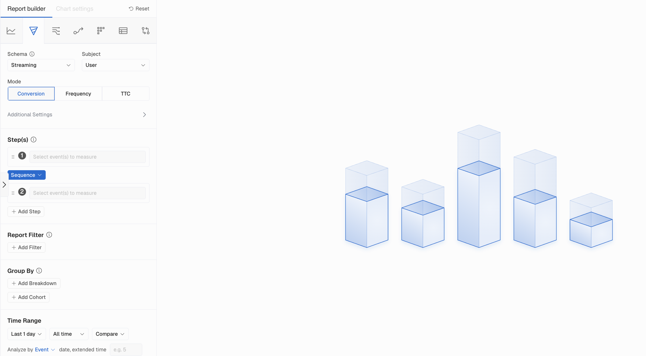 Build powerful Funnel charts to measure conversion rates, identify drop-off points, and optimize multi-step user flows in your product.