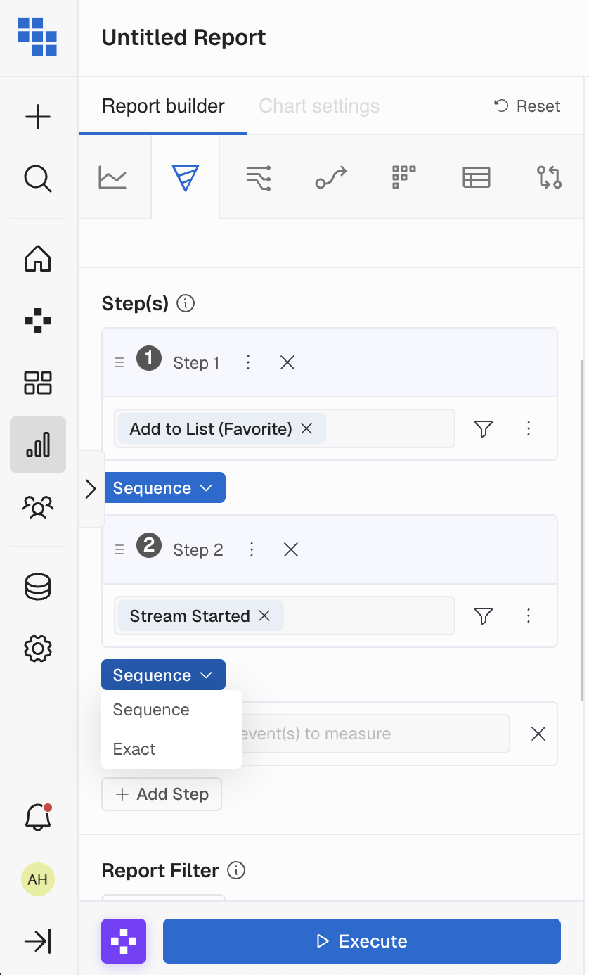 - Each step can have one or more Events with Filters.