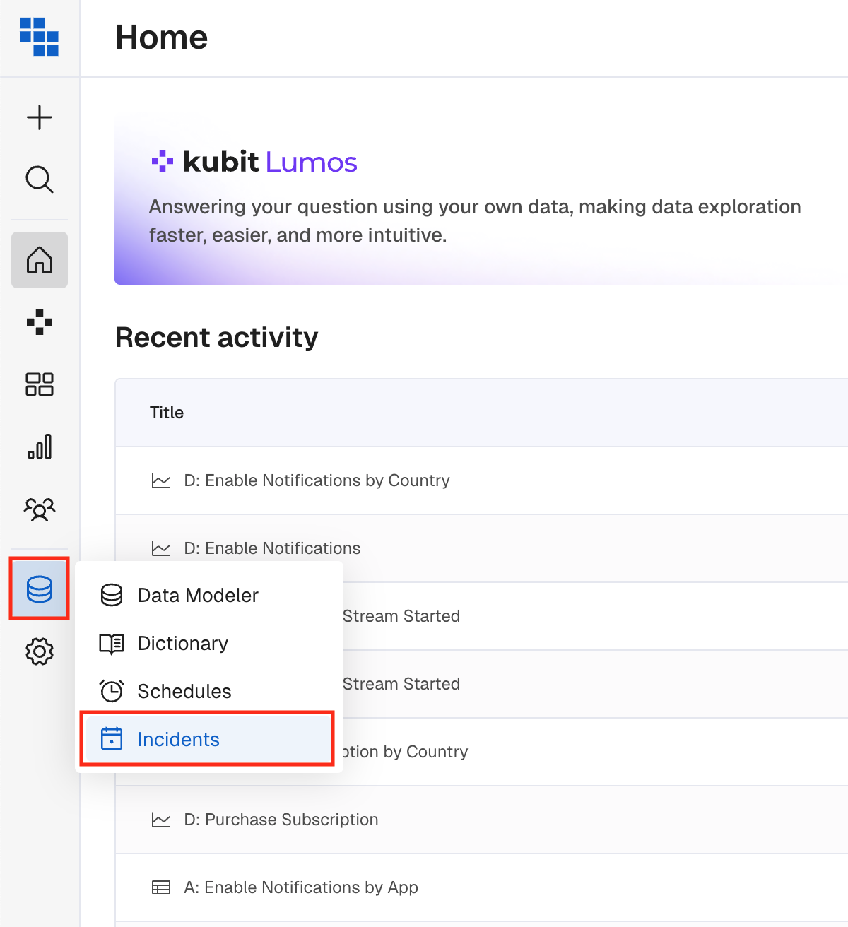 An Incident in Kubit is a defined date or time period that a material business or product related event occurred that could impact the data the user is analyzing.