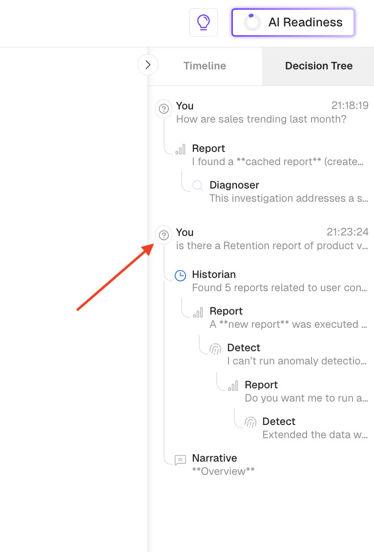 The Decision Tree shows you which agents are being executed and the decisions being made throughout the chat conversation with Lumos Agentic AI.