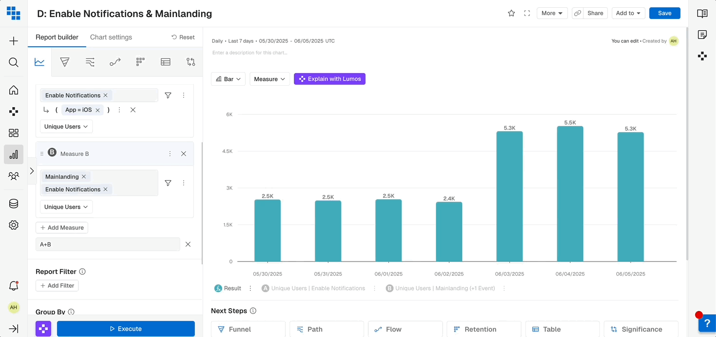 - Add additional events with the "+ Add Measure".