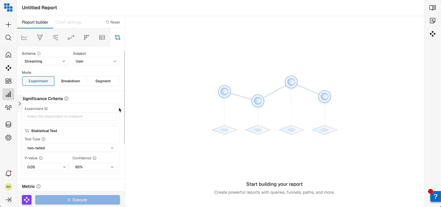- Select the Mode: Choose the mode for your analysis. Options include Experiment, Breakdown, or Segments.