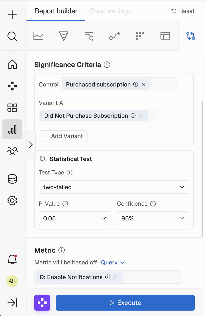 Kubit’s Significance Report provides statistical insights to determine if a finding in a Measure, Query, Funnel, or Retention is significant—meaning whether a result is likely due to chance or a specific factor of interest.