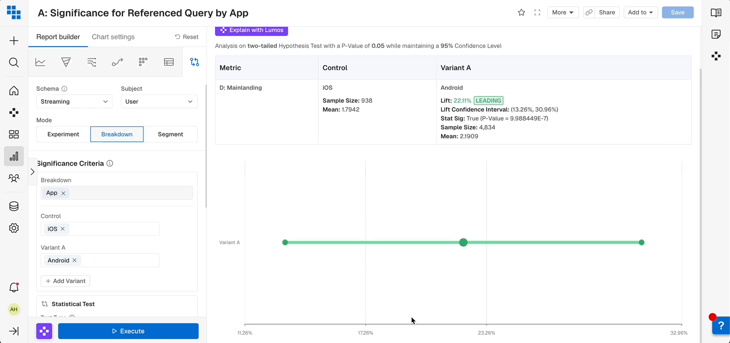 Use this mode to measure lift from dataset values like User Type, Platform, or Country. You can add more variants if your breakdown value has more than two groups.